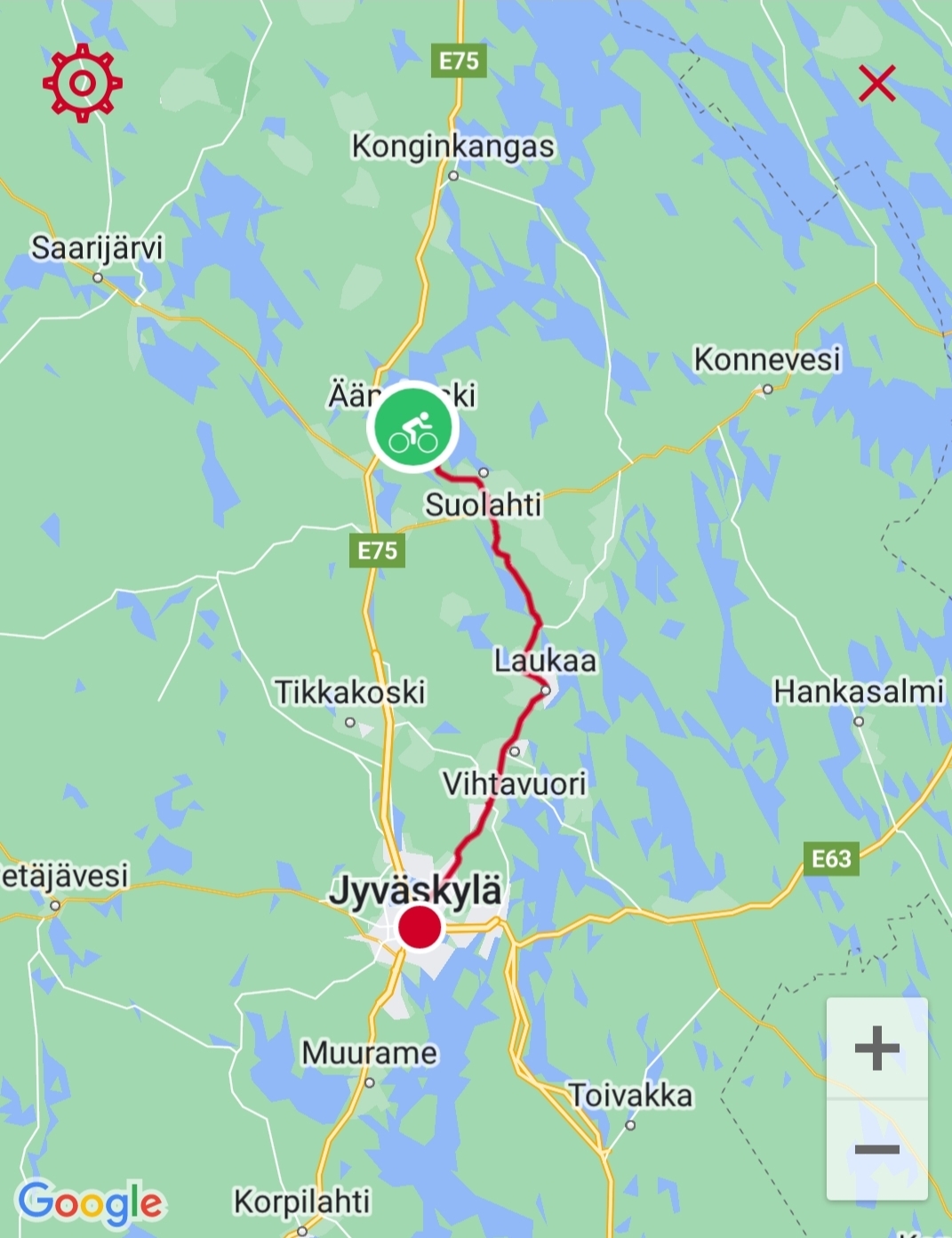 Polvikipu muuttui koko ajan pahemmaksi ja tuntui vain polkiessa. Panacodista ei ollut apua, joten otin toisen Laukaan jälkeen, jotta selviäisin Jyväskylään asti. En ollut ottanut reissuun kuin neljä Panacodia, varautuen migreeniin, jota harvoin tulee. Ei käynyt mielessäkään, että polvi voisi pettää. Olisi pitänyt pitää se lepopäivä, kuten alun perin suunnittelin.